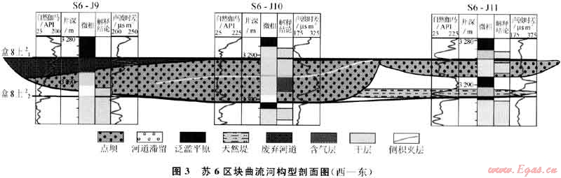 在河流相構(gòu)型單元中,河道砂體構(gòu)型單元、溢岸構(gòu)型單元相當(dāng)于傳統(tǒng)沉積微相概念中的微相組合國(guó)模,點(diǎn)壩、天然提、決口扇等則相當(dāng)于單一微相,而點(diǎn)壩內(nèi)部的側(cè)積體、側(cè)積面等則相當(dāng)于單一微相的內(nèi)部單元。構(gòu)型研究比傳統(tǒng)的沉積微相研究更為精細(xì),目前我國(guó)油氣田生產(chǎn)部門(mén)對(duì)儲(chǔ)層研究多限于單一微相級(jí)別,對(duì)單一微相內(nèi)部的結(jié)構(gòu)單元研究很少,然而,這些微相內(nèi)部的構(gòu)型單元對(duì)油氣層內(nèi)部剩余油氣分布及開(kāi)發(fā)效果具有十分重要的控制作用。在蘇里格氣田高效開(kāi)發(fā)過(guò)程中,開(kāi)展高效開(kāi)發(fā)先導(dǎo)試驗(yàn)區(qū)的儲(chǔ)層構(gòu)型研究,使蘇里格氣田的儲(chǔ)層研究更加精細(xì)化和定量化。