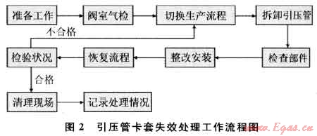 在對隱患原因進行全面統(tǒng)計分析的基礎(chǔ)上,制訂了嚴格的引壓管卡套失效處理技術(shù)方案。引壓管卡套失效處理工作流程圖如圖2所示。