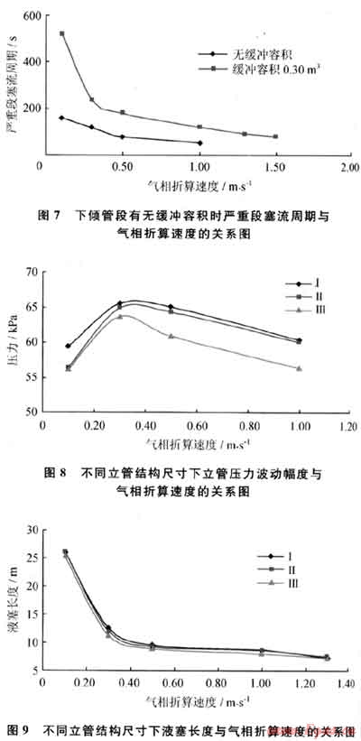 2.5 立管結(jié)構(gòu)尺寸及增加下傾管段緩沖容積對流動特性的影響