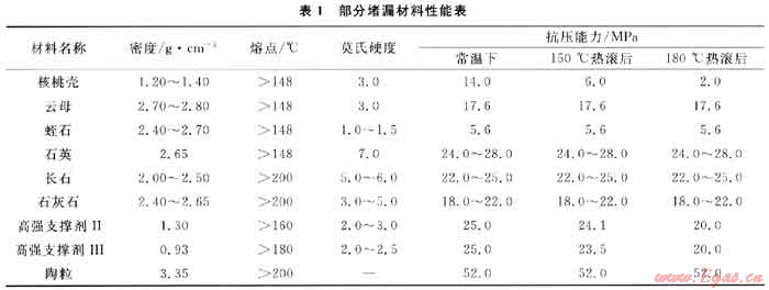 根據(jù)橋接堵漏封堵裂縫的要求,對以往鉆井施工中常用的惰性堵漏材料,以及新選的長石、高強(qiáng)支撐劑Ⅱ型、高強(qiáng)支撐劑Ⅲ型、等進(jìn)行了抗溫、抗壓等實(shí)驗(yàn),結(jié)果見表1。