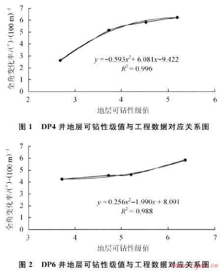 由圖1、2可以看出:①地層可鉆性級值與井眼全角變化率存在函數(shù)關(guān)系;②隨著地層可鉆性級值的增加,井眼全角變化率遞增。