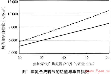 在實際應用中,當利用氮氣替代高爐煤氣與焦爐煤氣合成轉(zhuǎn)爐煤氣時,由于其能夠互換的范圍較小,難于實現(xiàn)各參數(shù)的精確控制,為保證安全及穩(wěn)定運行,可適當提高焦爐煤氣在混合氣中的比例,以保證不致形成脫火現(xiàn)象。