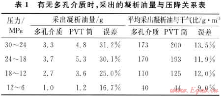 2) 多孔介質(zhì)相態(tài)研究有待繼續(xù)下去,在露點壓力到最大凝析壓力之間,多孔介質(zhì)對凝析油的采出程度降低可達31.2%,值得重視。