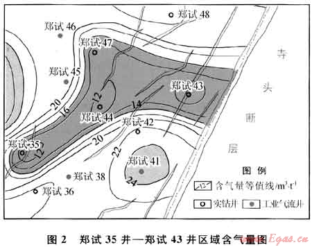 鄭試35井鄭試43井所在區(qū)域(圖2)靠近寺頭斷層,區(qū)域內(nèi)NNE向小斷層發(fā)育,而鄭試35井和鄭試43井均處于斷層附近,距離斷層小于100m3。斷層切割煤層會(huì)破壞頂?shù)装宓姆獯嫘阅?,加速煤層氣的解析、逸散,且部分?jǐn)鄬涌赡軠贤簝?chǔ)層附近含水層,導(dǎo)致煤層氣的溶解流失。因此,鄭試35井-鄭試43井區(qū)內(nèi)含氣量普遍較低,鄭試35井、鄭試43井的含氣量?jī)H為3.24m3/t和8.06m3/t。