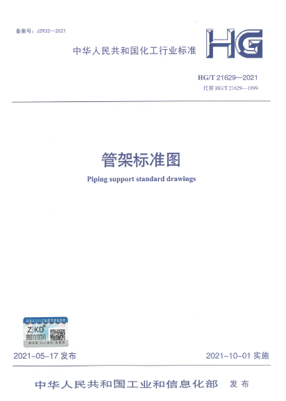 管架標(biāo)準(zhǔn)圖HG∕T 21629-2021 適用于化工、石油化工等工業(yè)裝置的工藝管道、公用工程管道和煙氣管道標(biāo)準(zhǔn)管架的選用。