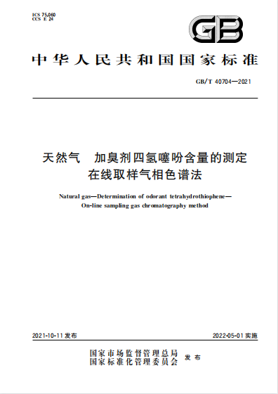 天然氣加臭劑四氫噻吩含量的測(cè)定 在線取樣氣相色譜法國(guó)標(biāo)∕T 40704-2021