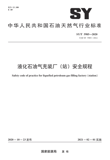 液化石油氣充裝廠(站)安全規(guī)程石油天然氣標(biāo)準(zhǔn)/T 5985-2020