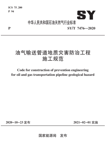 油氣輸送管道地質(zhì)災害防治工程施工規(guī)范SY∕T 7476-2020
