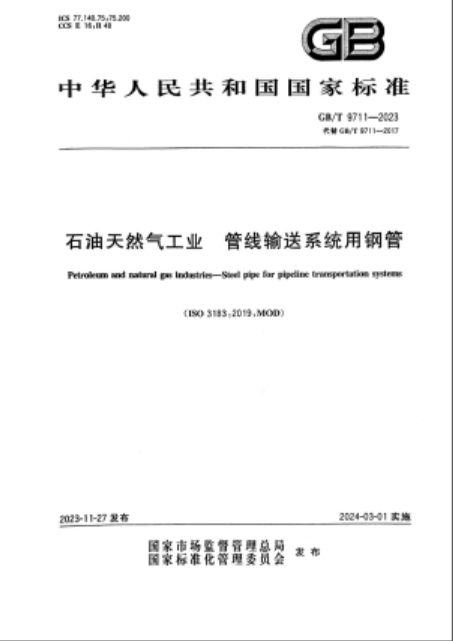 石油天然氣工業(yè) 管線輸送系統(tǒng)用鋼管國(guó)標(biāo)/T 9711-2023