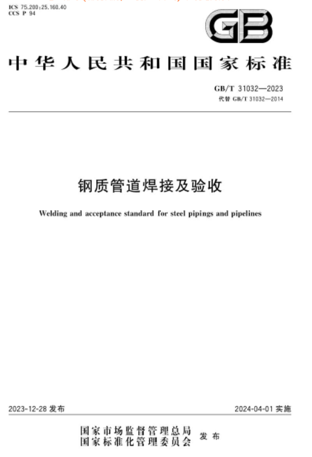 鋼制管道焊接及驗收GB/T 31032-2023