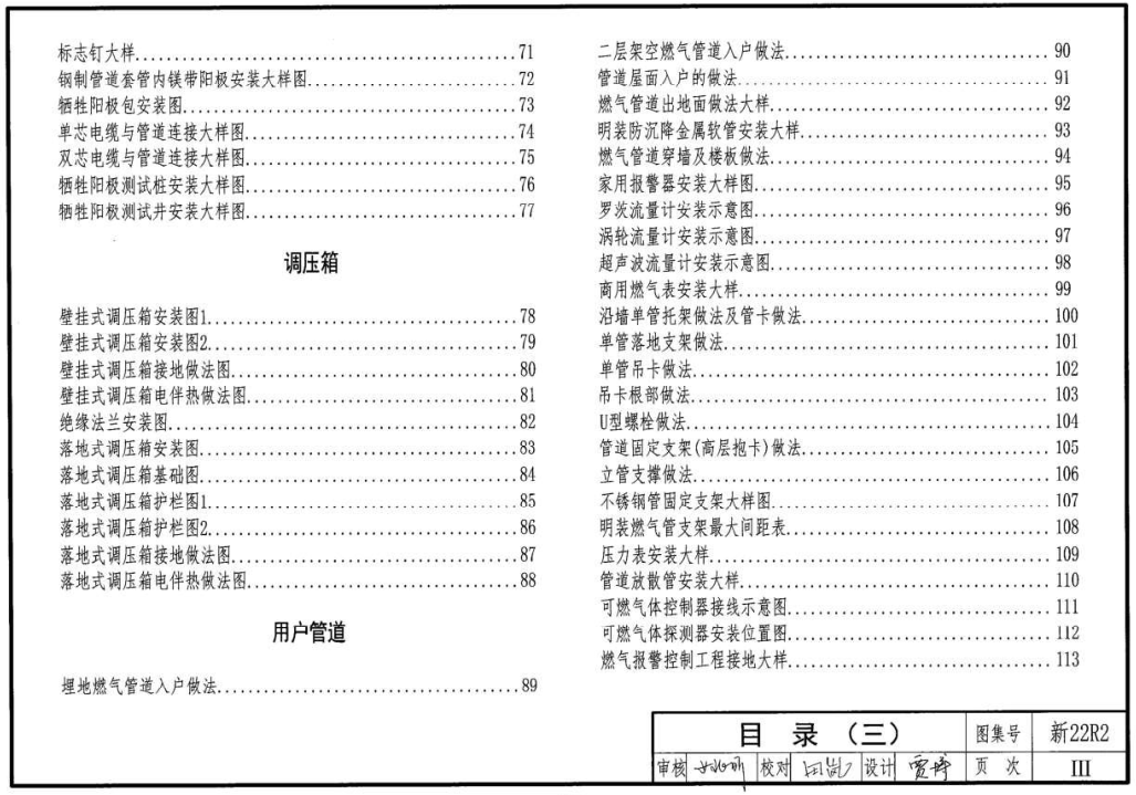 3.8-本圖集“調(diào)壓箱”,適用于用戶庭院內(nèi)專用調(diào)壓箱相關(guān)安裝,整合了設(shè)備基礎(chǔ)、護(hù)欄、電伴熱、靜電接地等安裝圖。